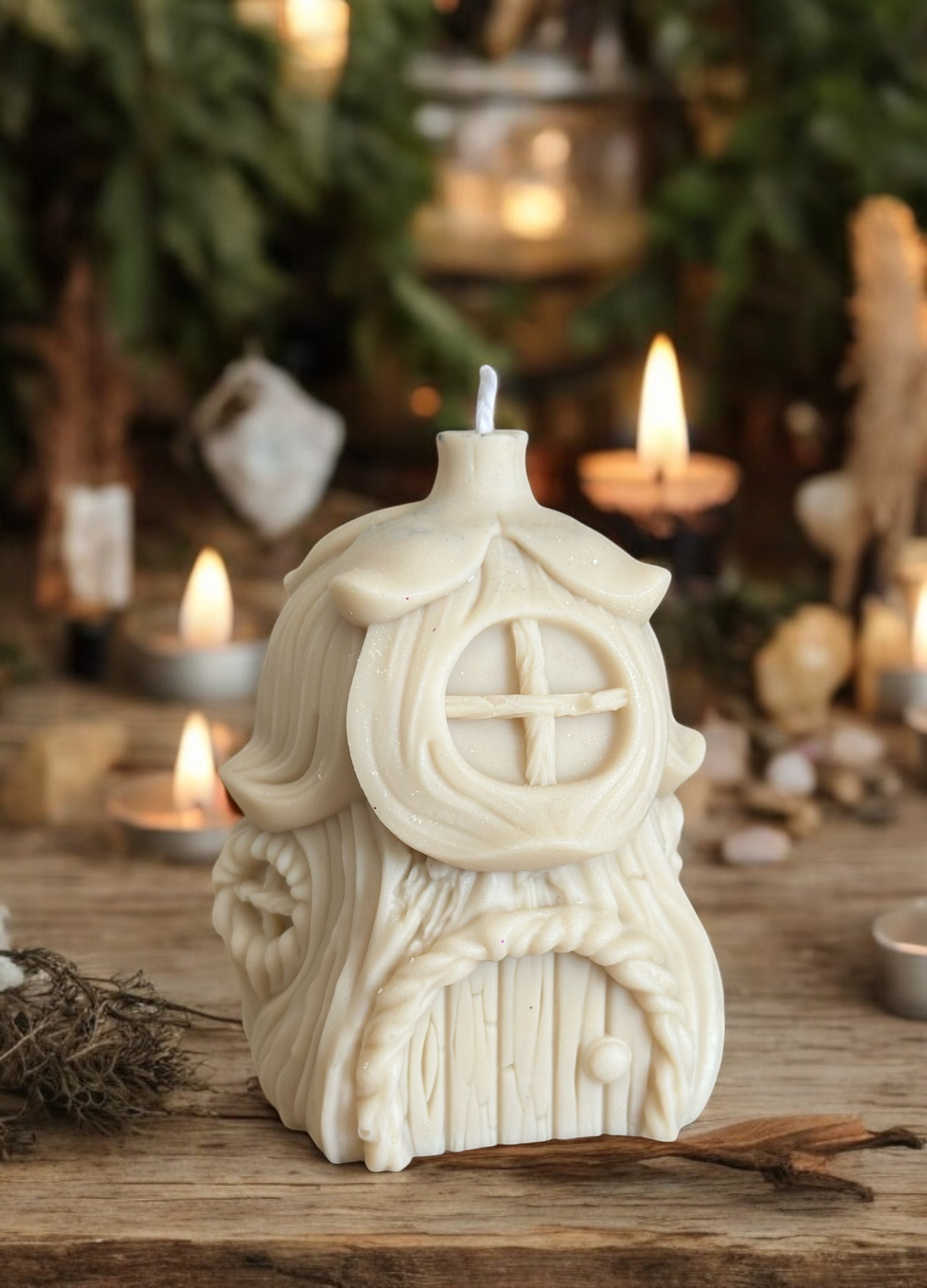 Cuando la enciendes, su llama se convierte en el corazón de un hogar diminuto, donde las hadas descansan entre aromas suaves y cálidos destellos.