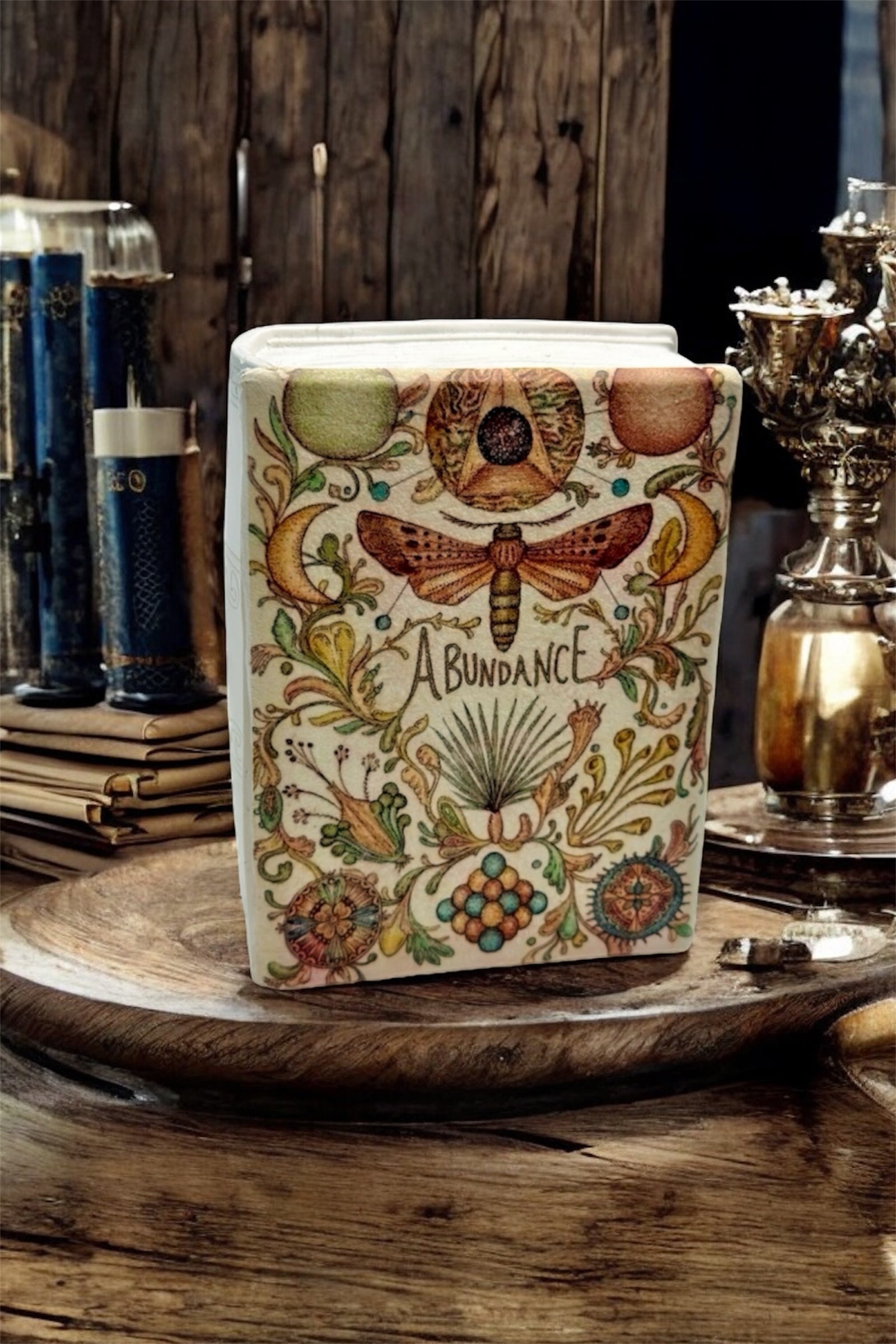 Deja que este envase de terrazo en forma de libro ilumine tu espacio con su encanto mágico y su aroma inolvidable.