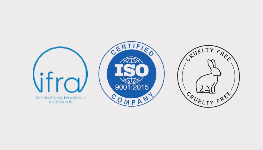 Produtos 100% naturais, livres de toxinas e fragrâncias sem ftalatos. Os certificados ISO e IFRA garantem qualidade internacional. Usamos mechas de algodão sem chumbo e não usamos crueldade.